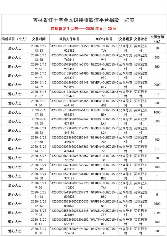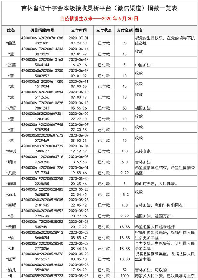上一篇: 【捐赠公示】吉林省红十字会接受社会捐赠一览表(2020年7月1日—2020年9月30日)