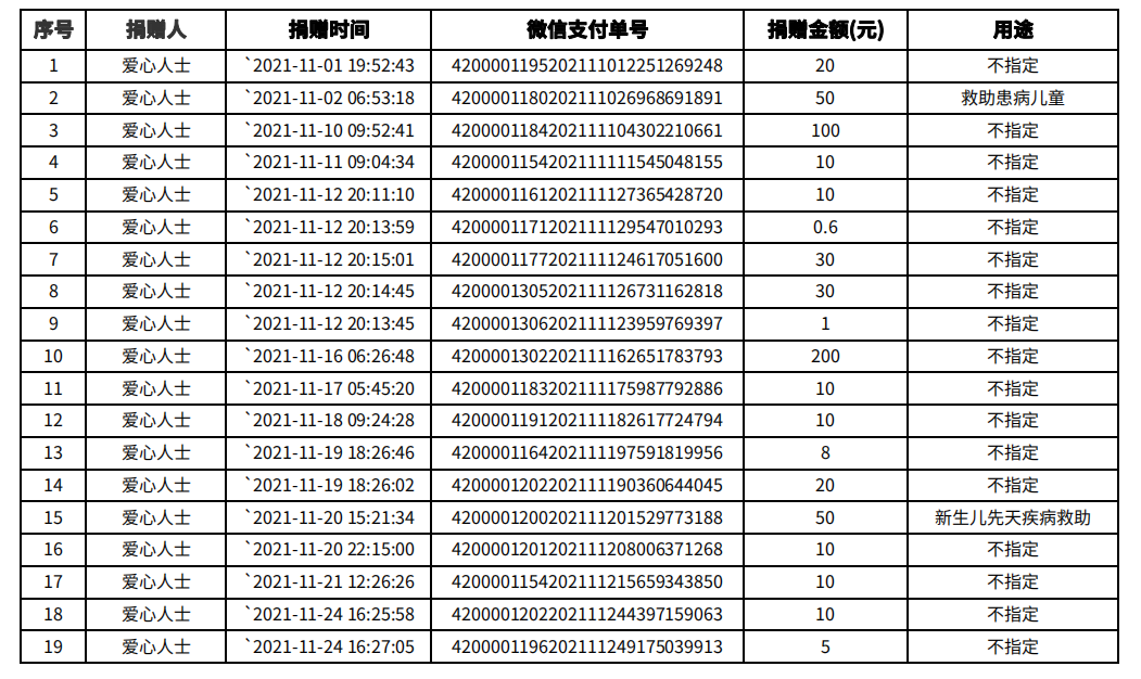 下一篇: 吉林省红十字会接收微信捐款公示 (2021年4月至10月)