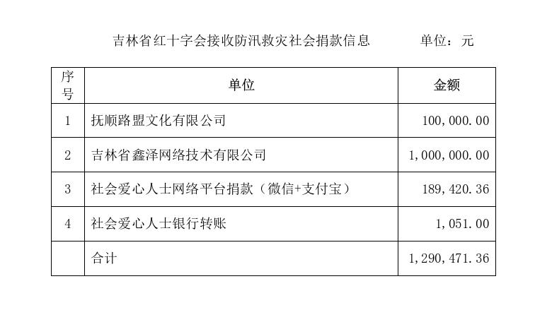 感谢全社会爱心企业、爱心人士通过吉林省红十字会这一爱心平台,为洪涝灾区奉献爱心!