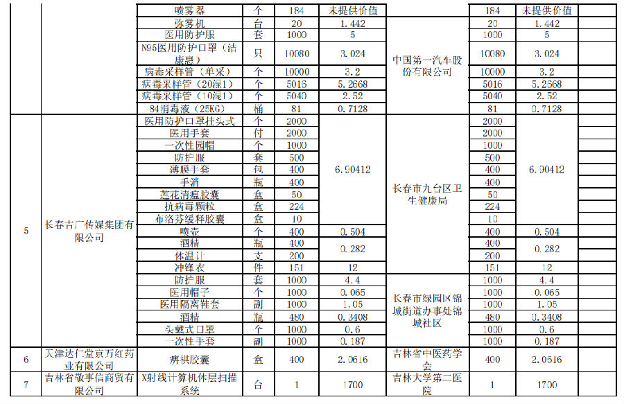 【捐赠公示】吉林省红十字会抗击疫情捐赠信息(截止2022年6月13日0时)