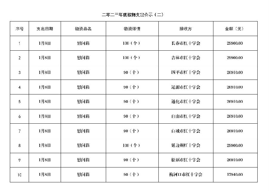 【捐赠公示】吉林省红十字会捐赠接受及发放公示