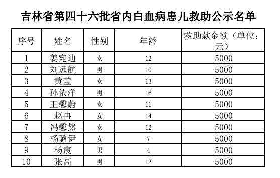 吉林省红十字会肿瘤人道救助项目救助信息公示 (2021年8月1日至2021年8月31日)