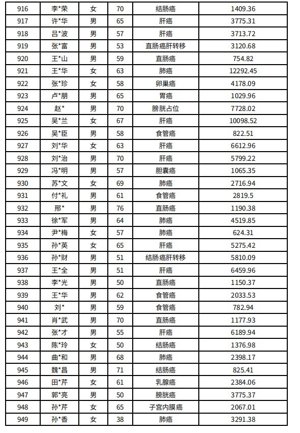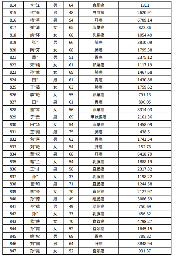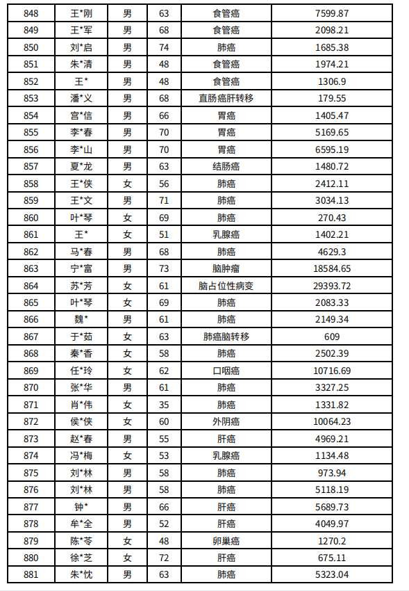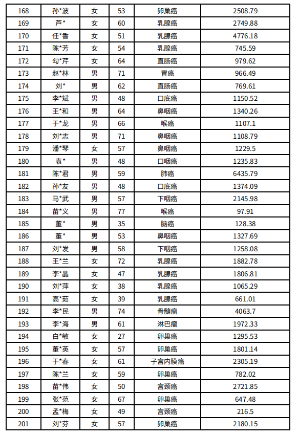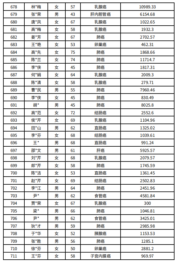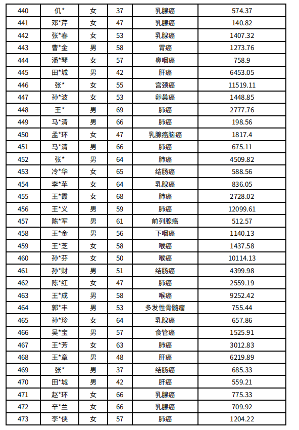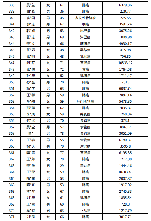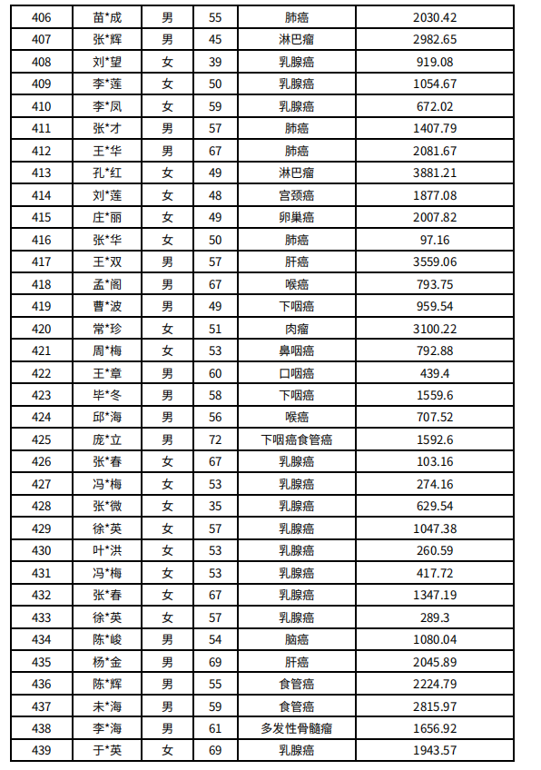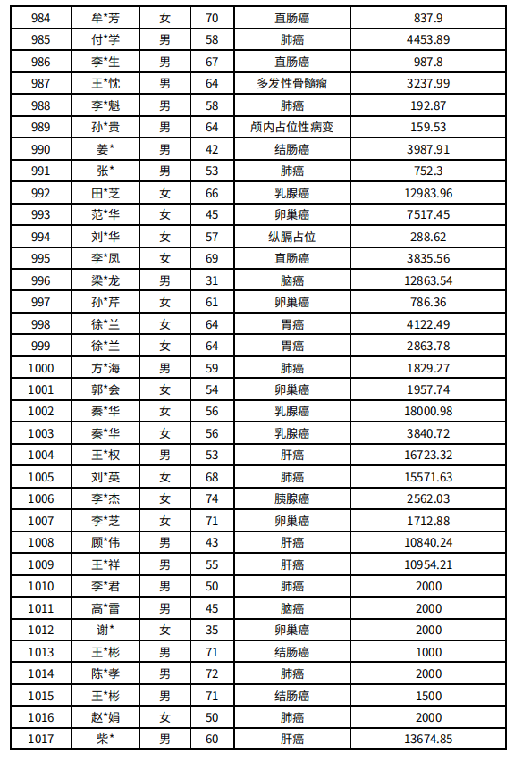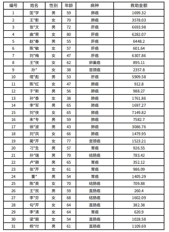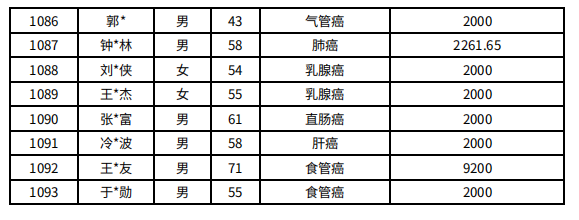 吉林省红十字会肿瘤人道救助信息公示