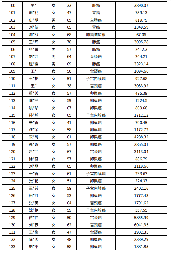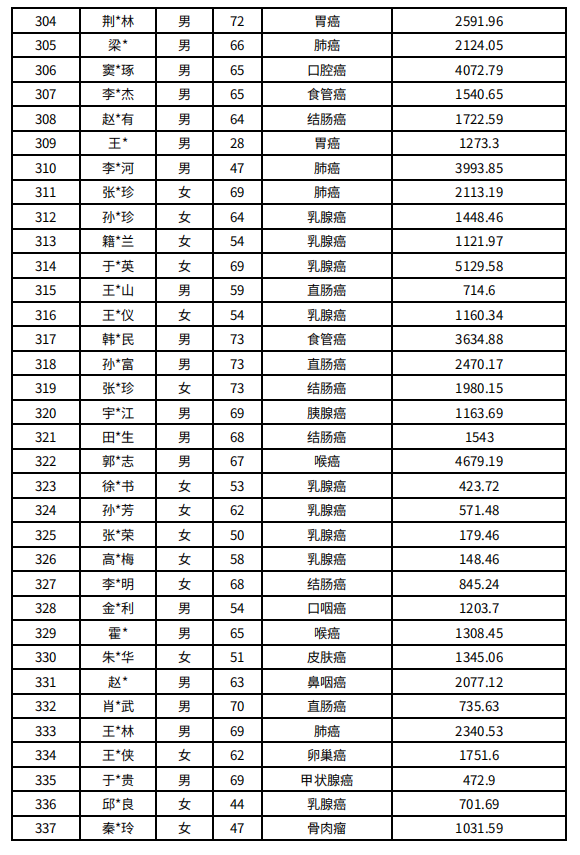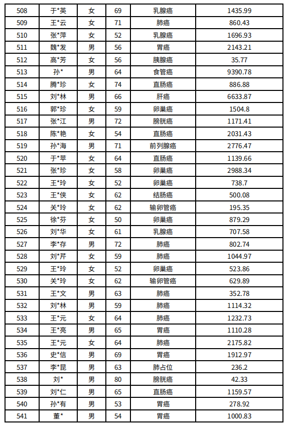 吉林省红十字会肿瘤人道救助信息公示(2021年11月)