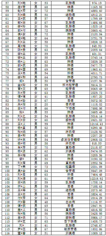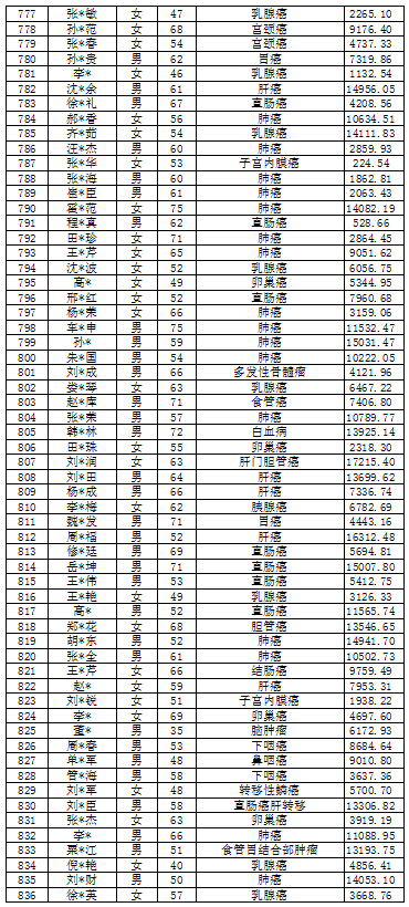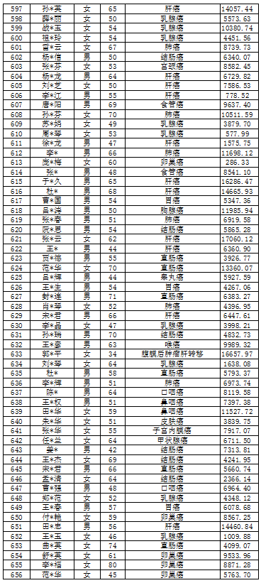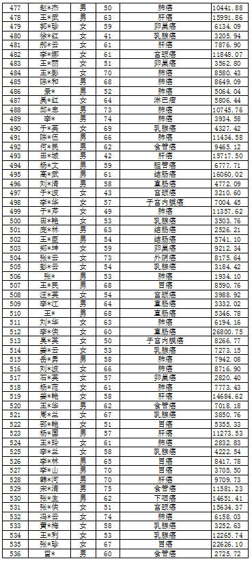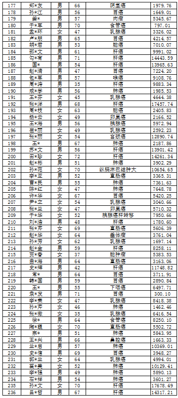 吉林省红十字会肿瘤救助信息公示表(2022年2月)