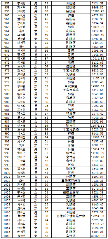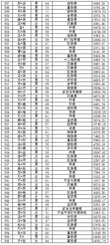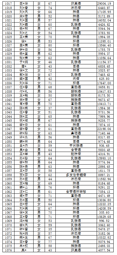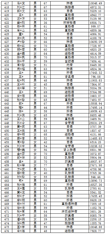 吉林省红十字会肿瘤救助信息公示表(2022年1月)
