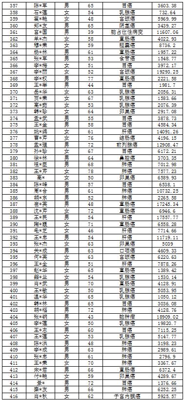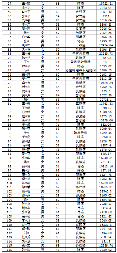 吉林省红十字会肿瘤救助信息公示表(2022年1月)