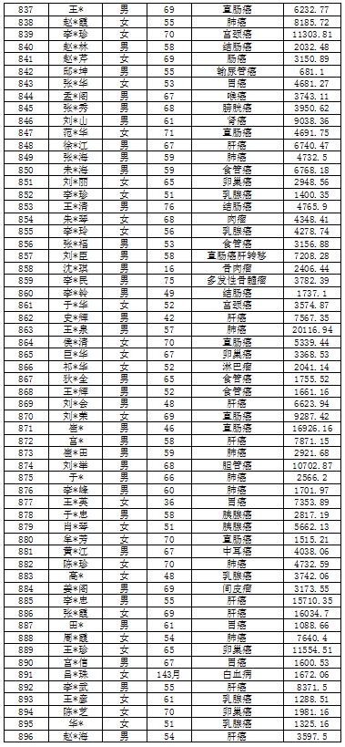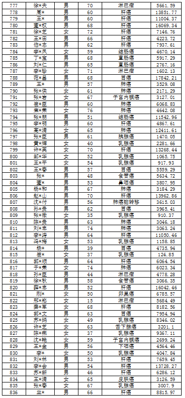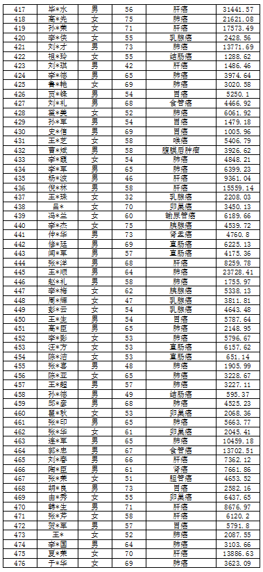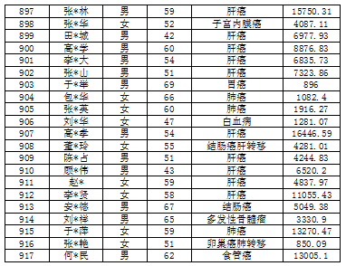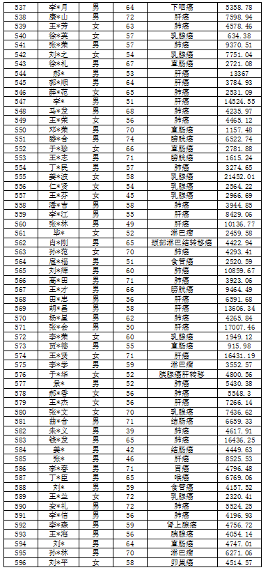 吉林省红十字会肿瘤救助信息公示表(2022年3月至4月)