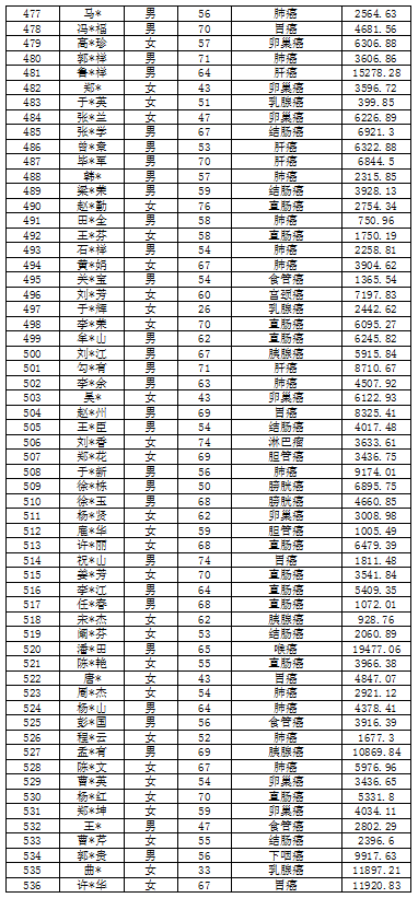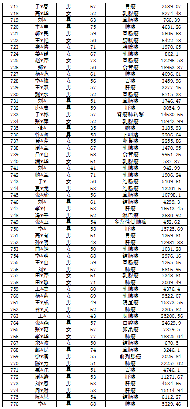 吉林省红十字会肿瘤救助信息公示表(2022年2月)