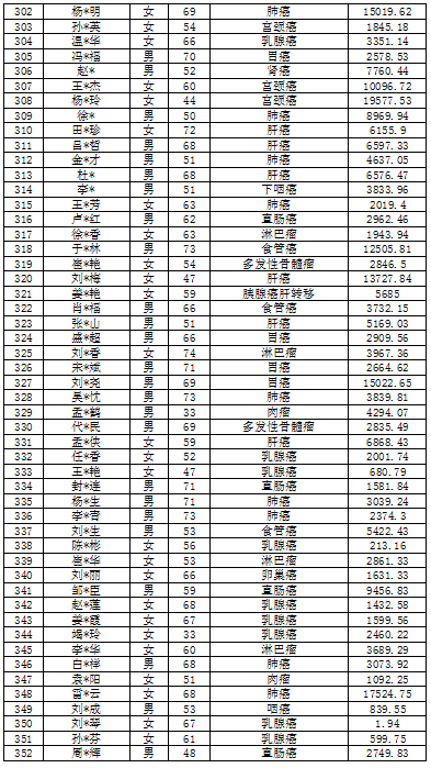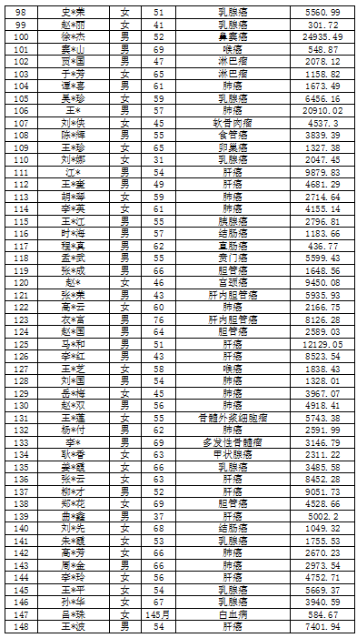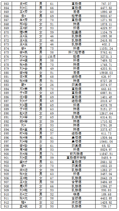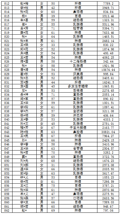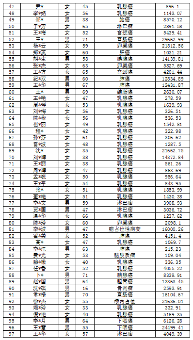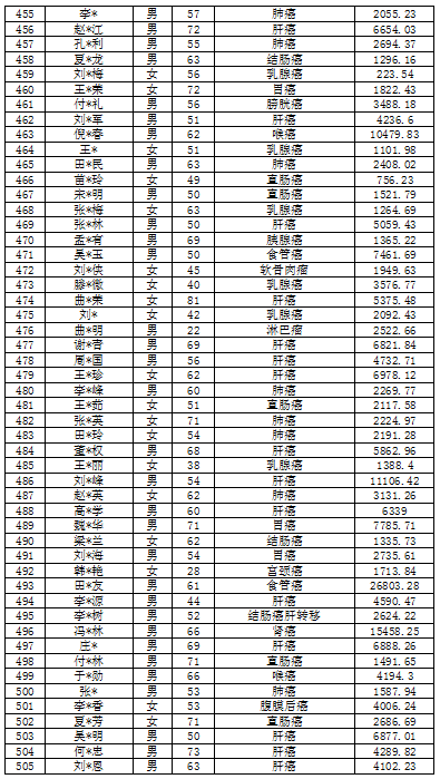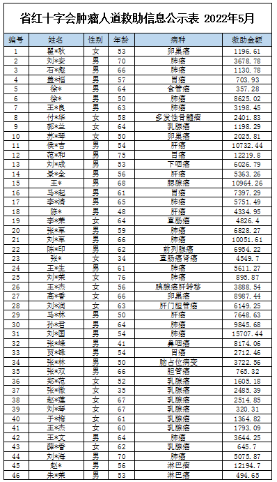 吉林省红十字会肿瘤救助信息公示表(2022年5月)