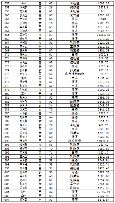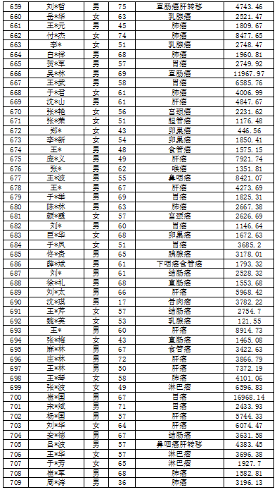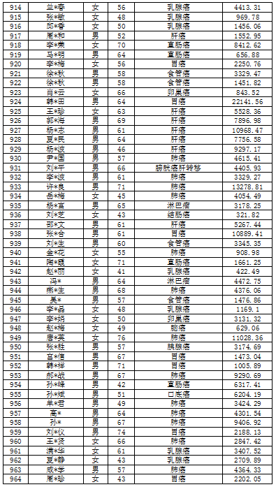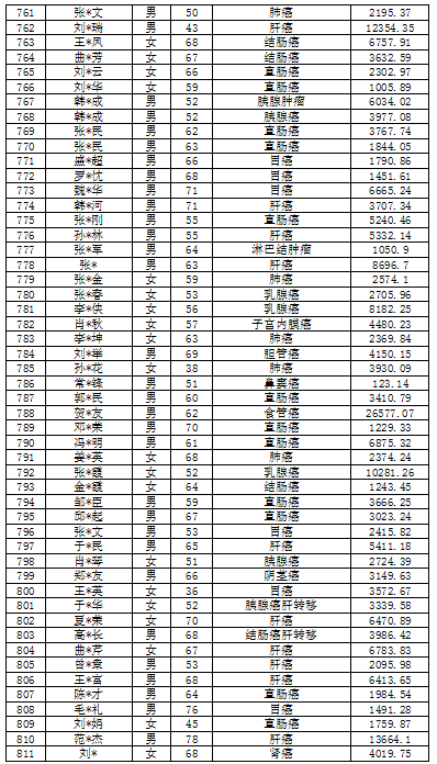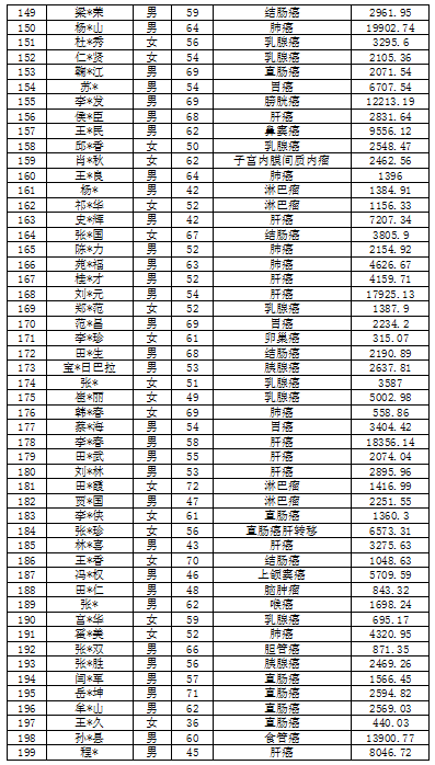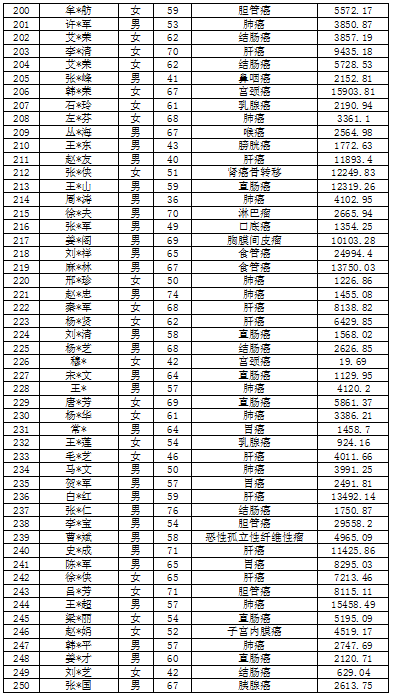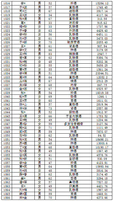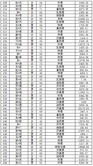 吉林省红十字会肿瘤救助信息公示表(2022年6月)