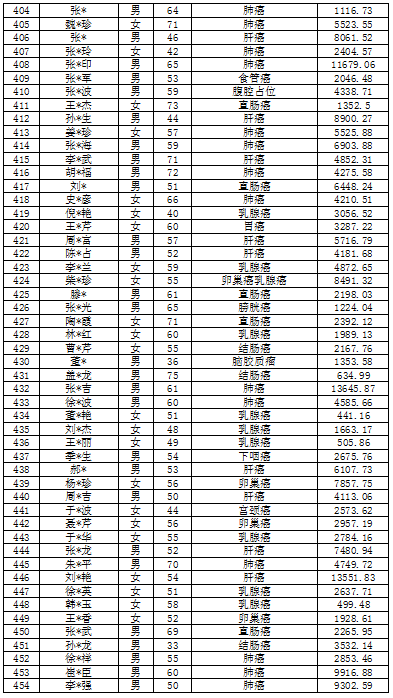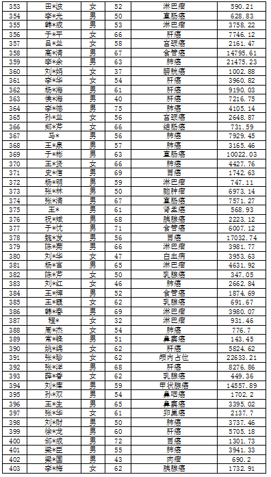 吉林省红十字会肿瘤救助信息公示表(2022年3月至4月)