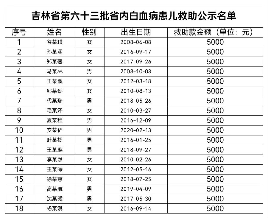 吉林省红十字会肿瘤人道救助信息公示(长春)2022年7-12月