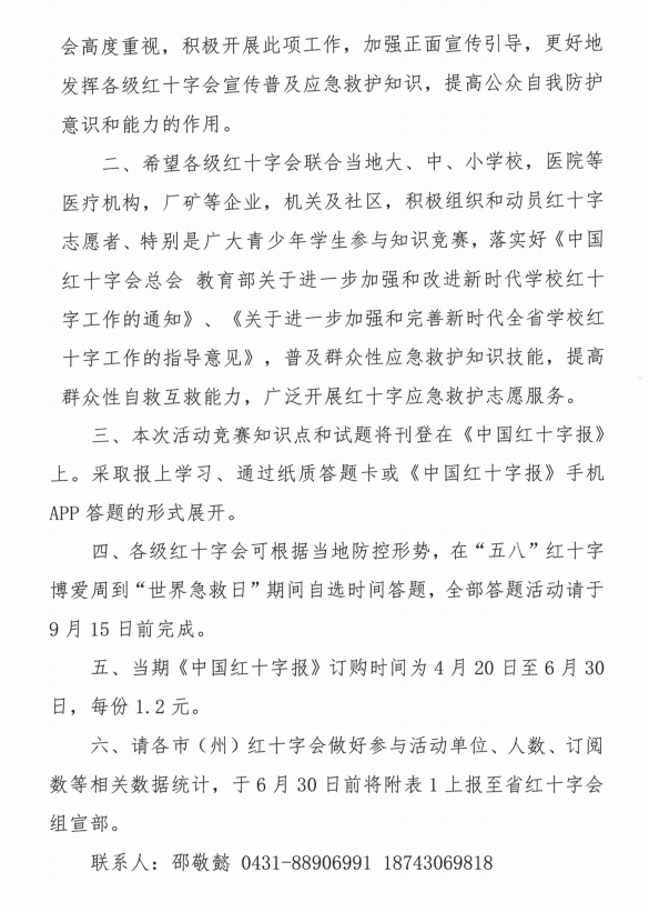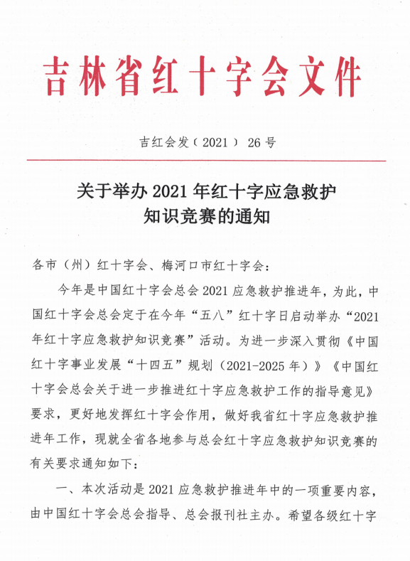 关于举办2021年红十字应急救护知识竞赛的通知