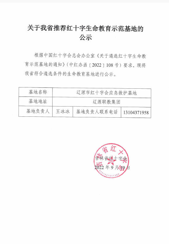 关于我省推荐红十字生命教育示范基地的公示
