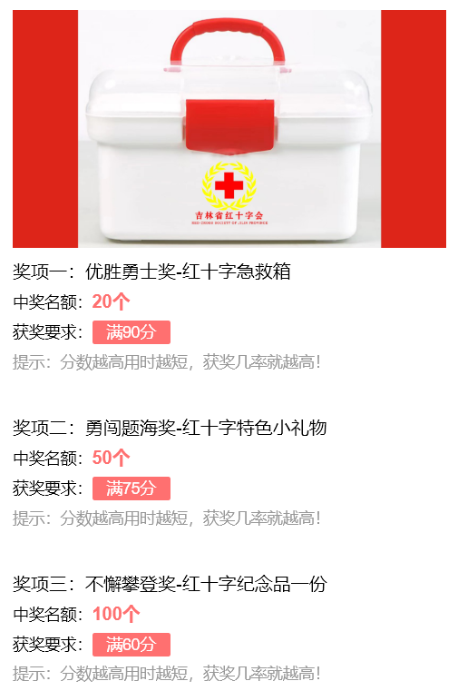 中奖名单将在5月14日上午10:00公布,届时请关注吉林省红十字会官方公众号动态以及微信提醒,疫情期间,我们的答题奖品将根据防控政策采用邮寄方式送出,敬请期待。