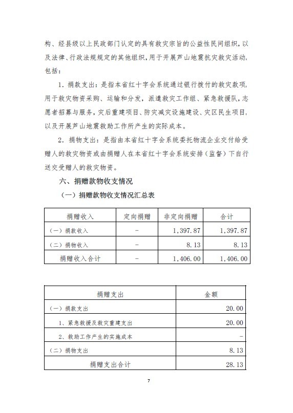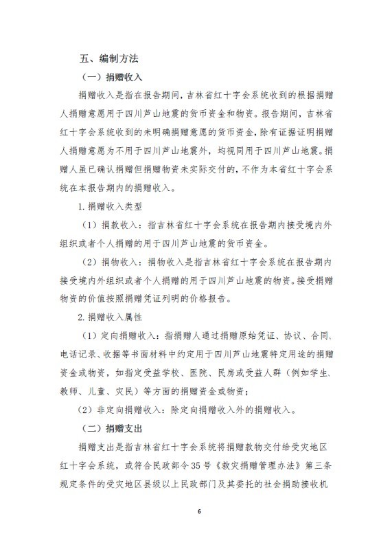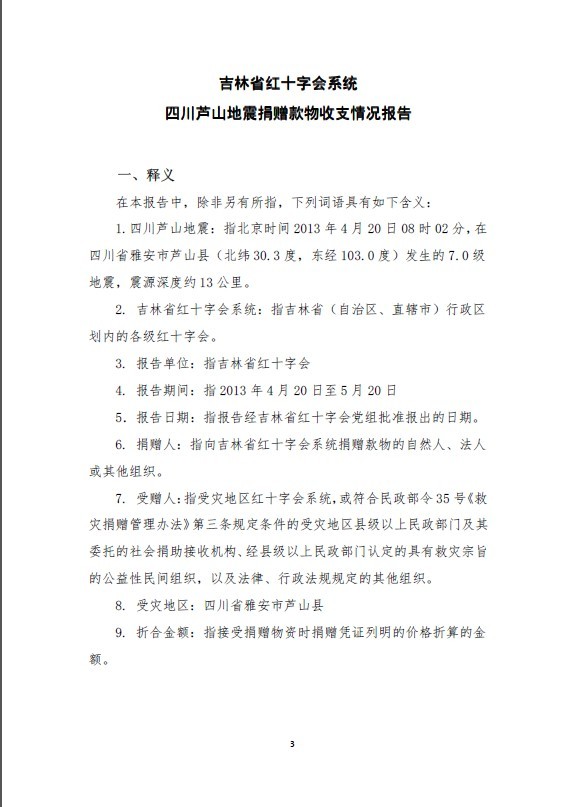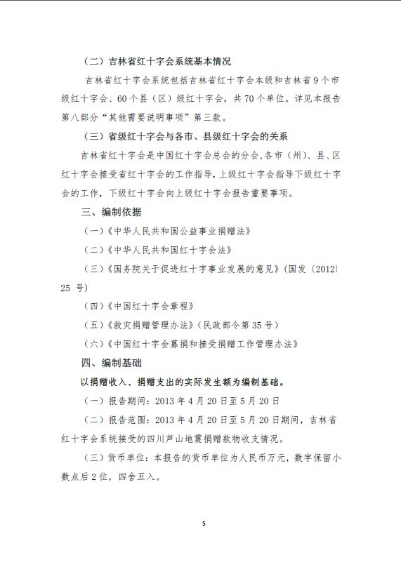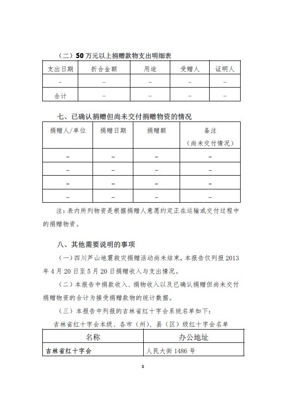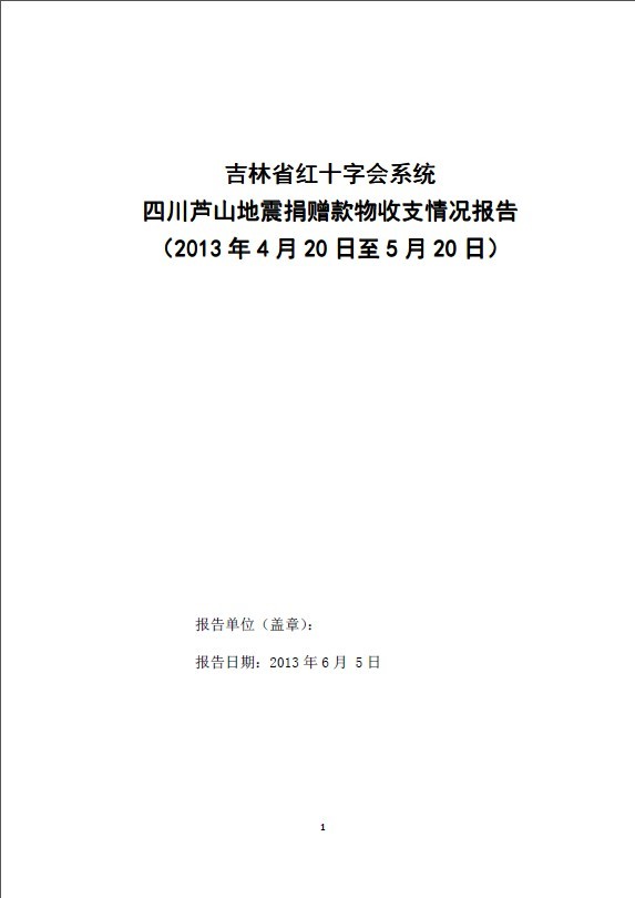 吉林省红十字会系统四川芦山地震捐赠款物收支情况报告(2013年4月20日至5月20日)