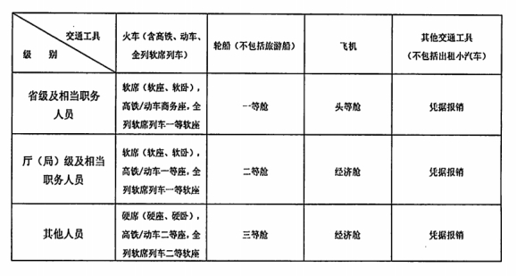 到出差目的地有多种交通工具可供选择时,应当选择相对经济便捷的交通工具出行,交通工具选择如下:
