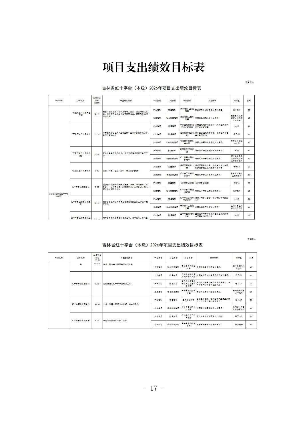吉林省红十字会(本级) 2026 年预算