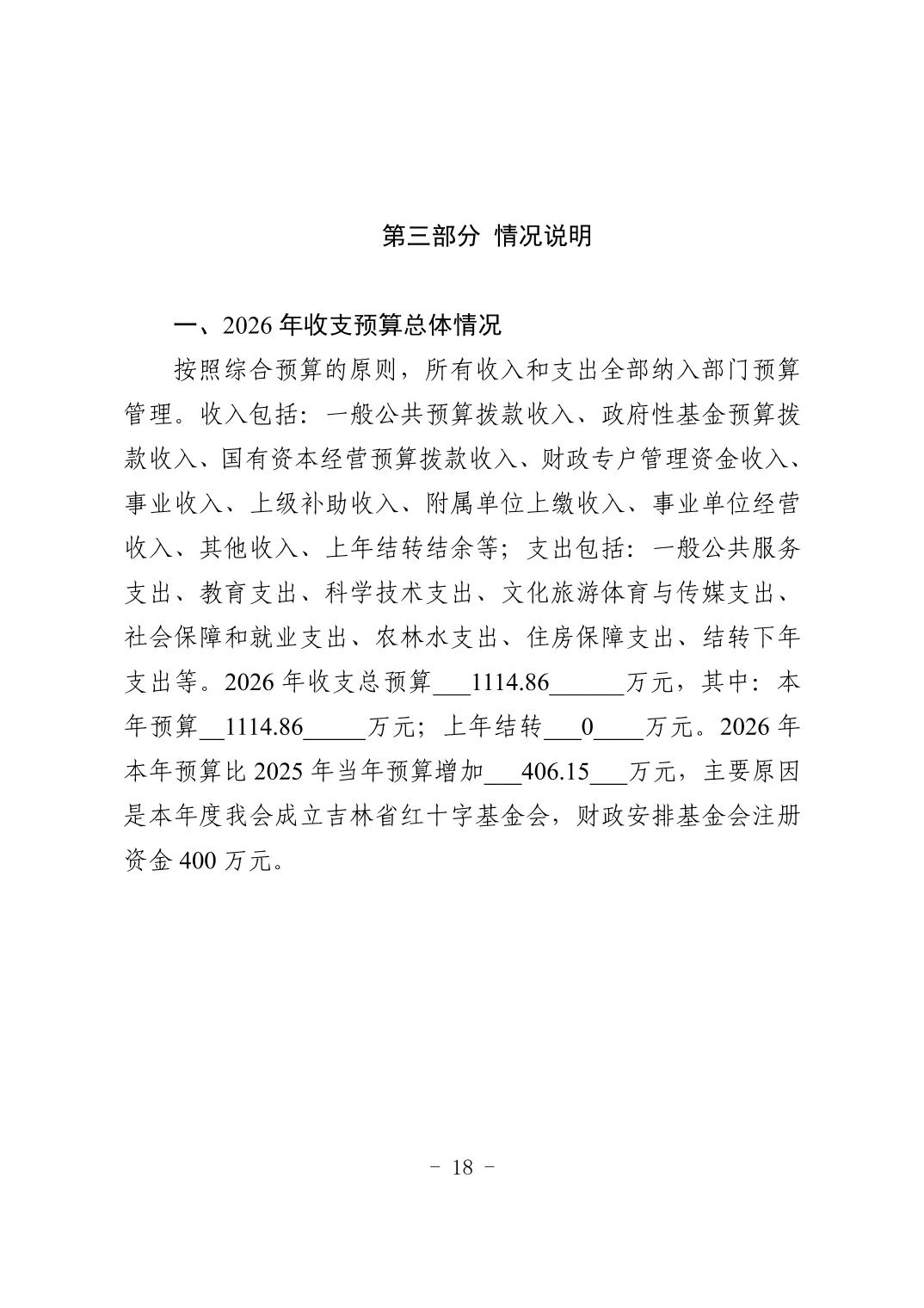 吉林省红十字会 2026 年部门预算