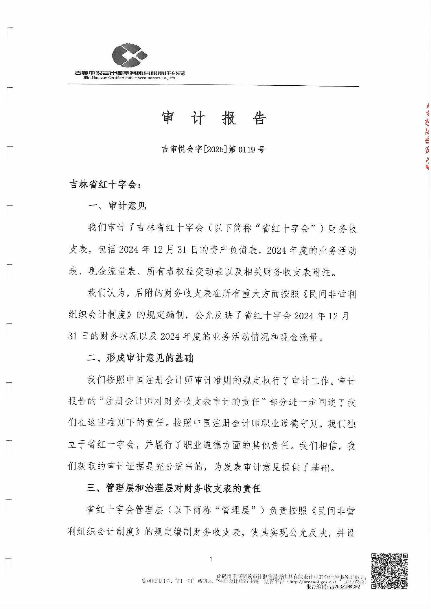 吉林省红十字会2024年审计报告