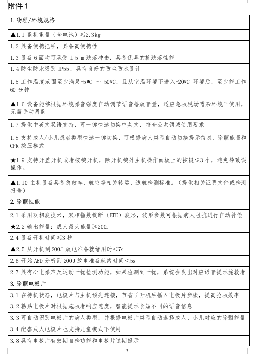 附件:1、AED自动体外除颤仪和壁挂式AED橱柜的技术要求
