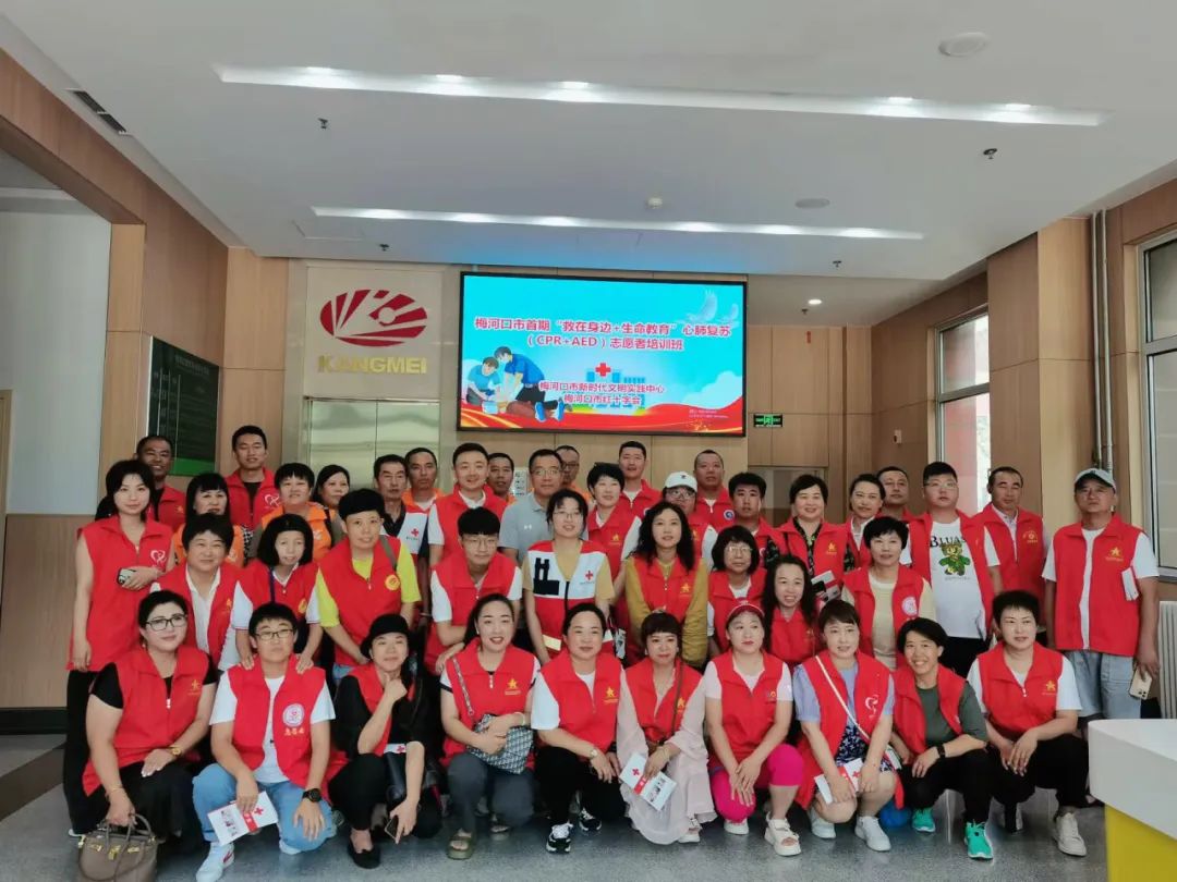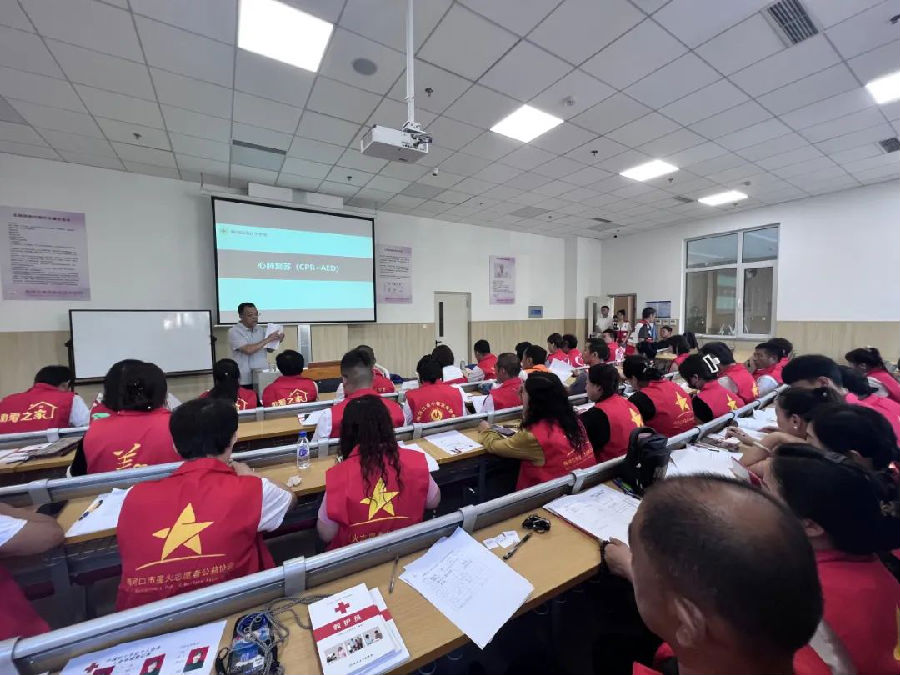 为进一步普及应急救护常识,提高自救互救意识及防灾避险能力,7月27日,梅河口市新时代文明实践中心联合梅河口市红十字会,在红十字会应急救护培训基地(康美职业技术学院实训楼),组织开展全市首期“救在身边+生命教育”心肺复苏(CPR+AED)志愿者培训班。星火志愿者公益协会、小桔灯志愿者团队和手牵手心连心公益团等9个社会志愿服务团体,共计60余名志愿者参加了此次培训。