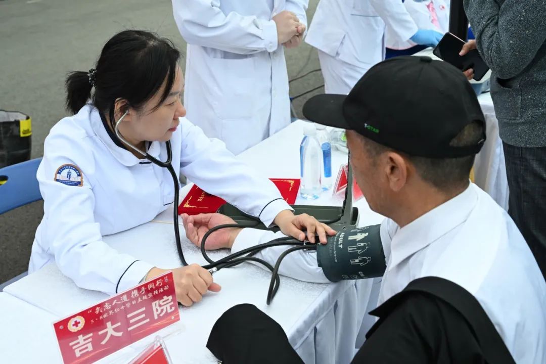 义诊区俨然成为流动的爱心医院。来自吉林大学第一医院、第二医院、中日联谊医院和省人民医院、王鹏眼镜公司的专业团队,为群众进行眼底筛查、血压血糖检测;当天共接待义诊群众600余人次。省红十字会工作人员现场为群众免费发放家庭常备药品;红十字志愿者穿梭在人群中,宣传普及“三救三献”知识。吉林亚泰制药股份有限公司和中国人寿财产保险股份有限公司长春中心支公司为活动提供公益支持。