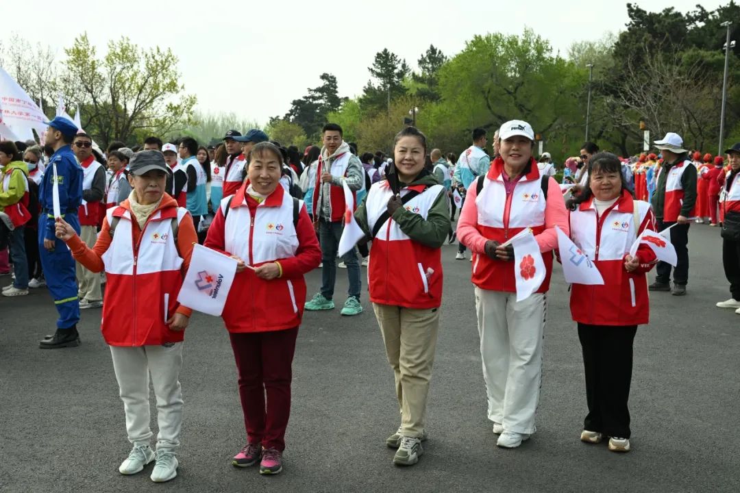 由红十字志愿服务队组成的公益徒步队伍如流动的红色纽带蜿蜒于林荫道间。大家都参与了腾讯公益平台“一块走”捐步活动,走步达5800步即可捐出步数,为“温暖家庭箱”项目支持0.5元公益金。领队的器官捐献志愿服务队队长挥舞着手中的队旗,带头出发。他说:“每个生命都值得全力以赴,这就是红十字精神的真谛。”
