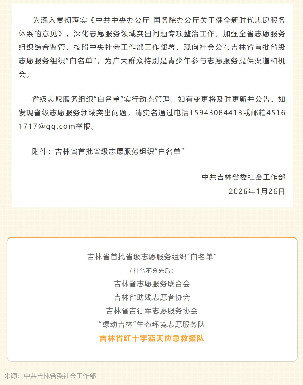 关于公布吉林省首批省级志愿服务组织“白名单”的公告