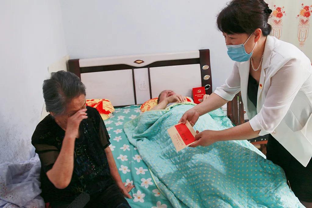在看望过程中,老党员虽然失语不能言语表达,但激动的泪水难掩对党的感激之情。