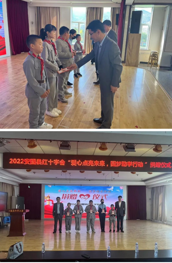 近日,安图红会联合县教育局举办2022年安图红十字“爱心点亮未来,圆梦助学行动”助学金发放仪式,为全县45名贫困学生发放助学金3.25万元。