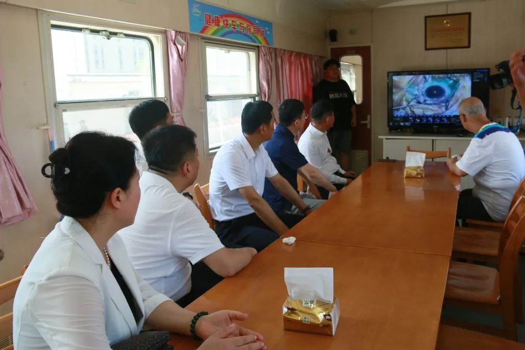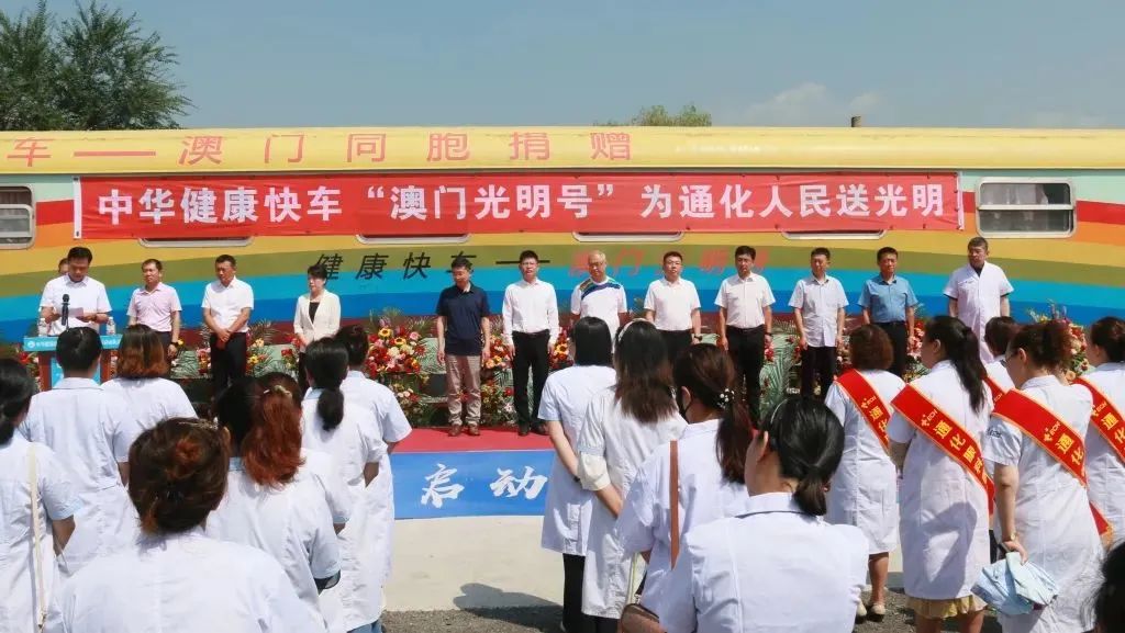 8月8日上午,“中华健康快车”通化站复明工程项目正式启动,该项目将用3个月的时间为我市1000名白内障患者免费实施复明手术。市政府副市长尹志刚、市政府副秘书长刘峰、中华健康快车“澳门光明号”车长李东岩、北京协和医院戴荣平教授及市卫生健康委、市红十字会、市乡村振兴局、市退役军人事务局、市教育局、市住建局、中国铁路沈阳局通化车务段、通化眼科医院等相关单位负责人出席启动仪式。通化市红十字应急救援队、市红十字志愿者协会、市“吉行军”志愿服务队的志愿者及市传染病院、市结核病院、通化眼科医院的医护人员和即将上车等待恢复光明的白内障患者等百余人参加了启动仪式。