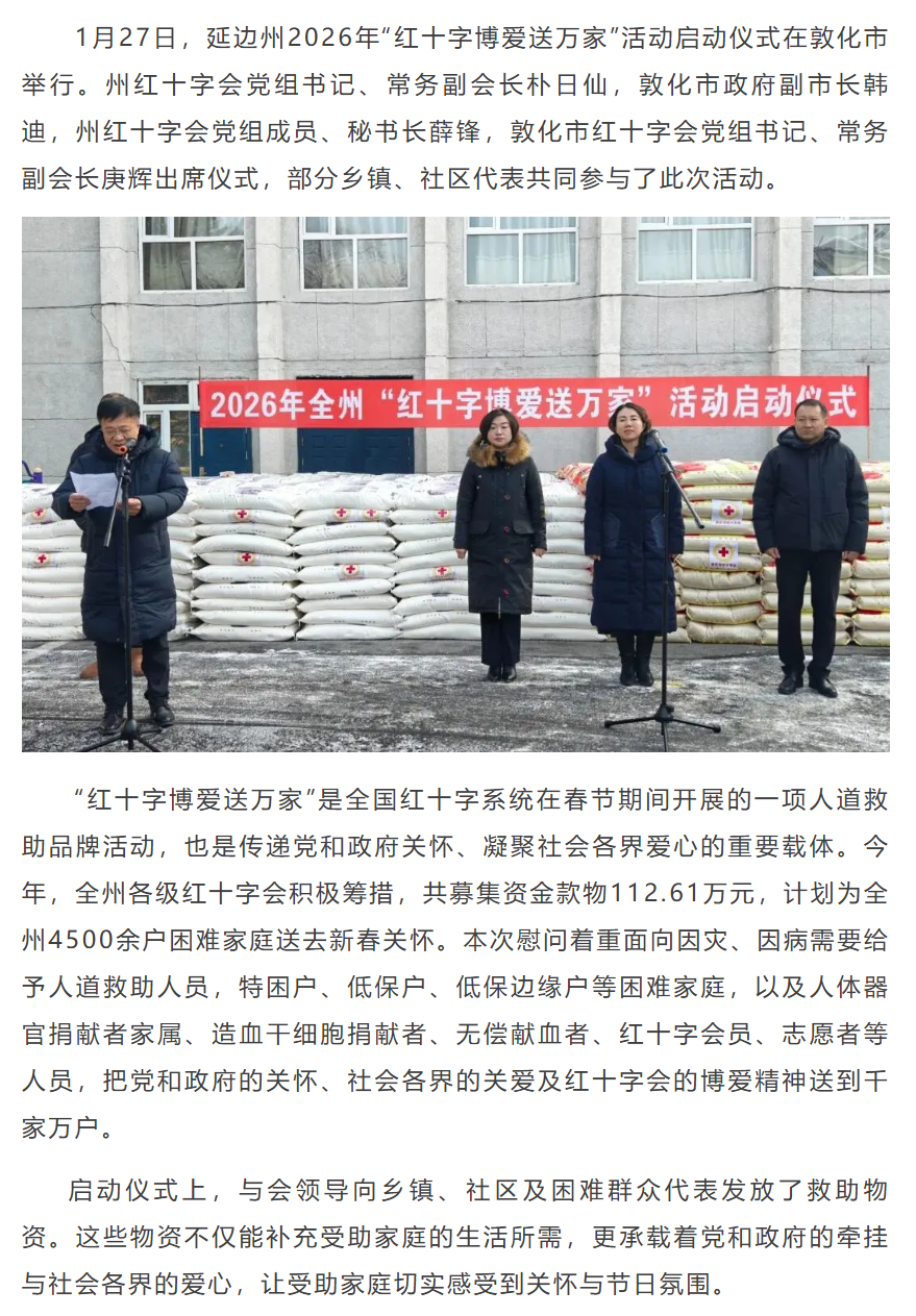 各地动态|情暖延边 爱满万家——延边州2026年“红十字博爱送万家”活动正式启动
