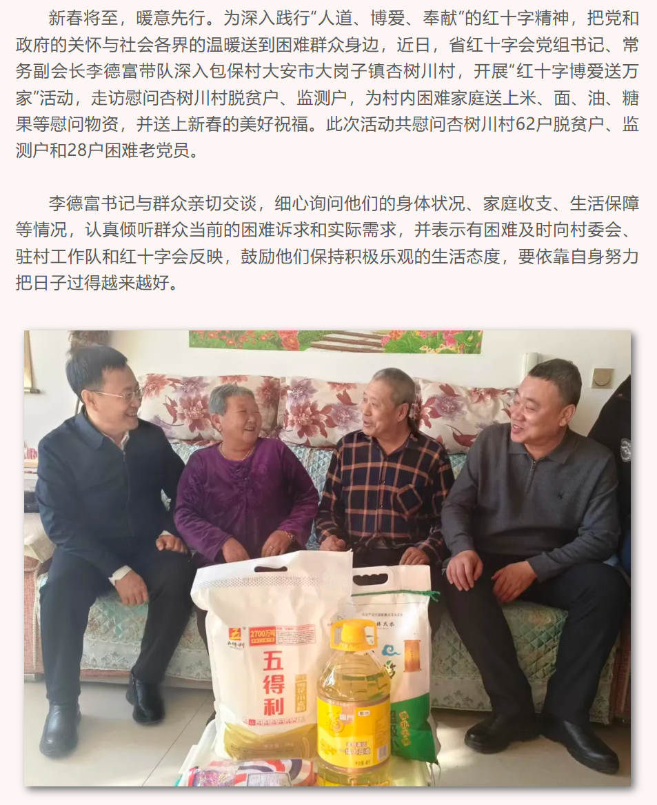 浓浓温情暖新春——省红十字会节前慰问退休老干部