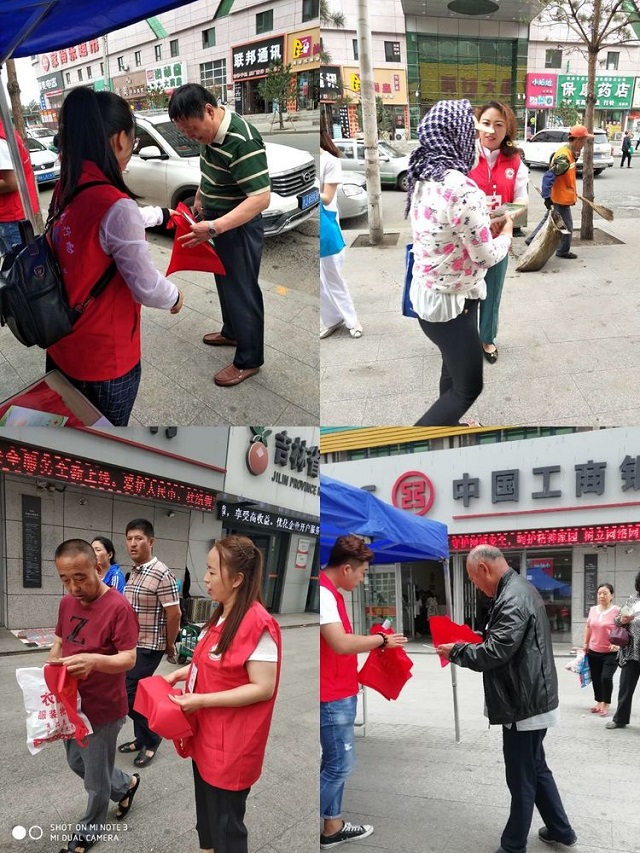 在6月14日献血日来临之际,扶余市红十字会联合西北社区、湿地等单位的爱心志愿者以“为他人着想、捐献热血、分享生命”开展了献血知识宣传活动。城区街道在显著位置悬挂横幅标语,在商中心组织志愿者发放宣传单。志愿者们为群众讲解献血知识,并鼓励广大市民积极投入到献血的行列中,希望全社会对自愿无偿献血的重要性引起更广泛的认识,鼓励更多的人尤其是青年,成为合格的经常献血者,在需要拯救生命时可使用的最安全血液。