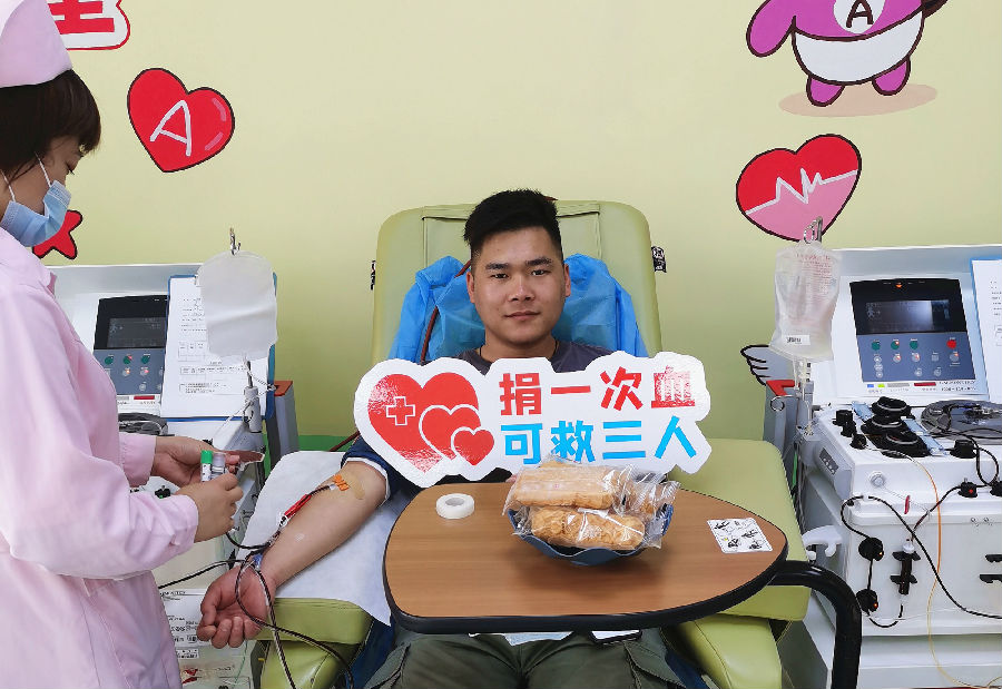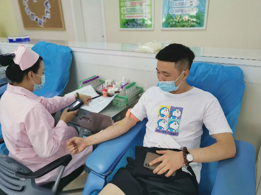 郭重久是一名集三重身份于一身的造血干细胞捐献志愿服务队骨干队员,即是无偿献血者、造血干细胞捐献者的同时,又身为送髓小队队员的他,不仅积极参加这次无偿献血活动,还带来了两名同事一同参与。“无偿献血是一件为他有利,于己无害的善举,我虽然不能做到呼吁所有人都来进行无偿献血,但我可以尽自己最大的努力来向我身边的朋友、亲人宣传这份神圣的事业,尽量让他们也都加入到无偿献血的队伍中来。”