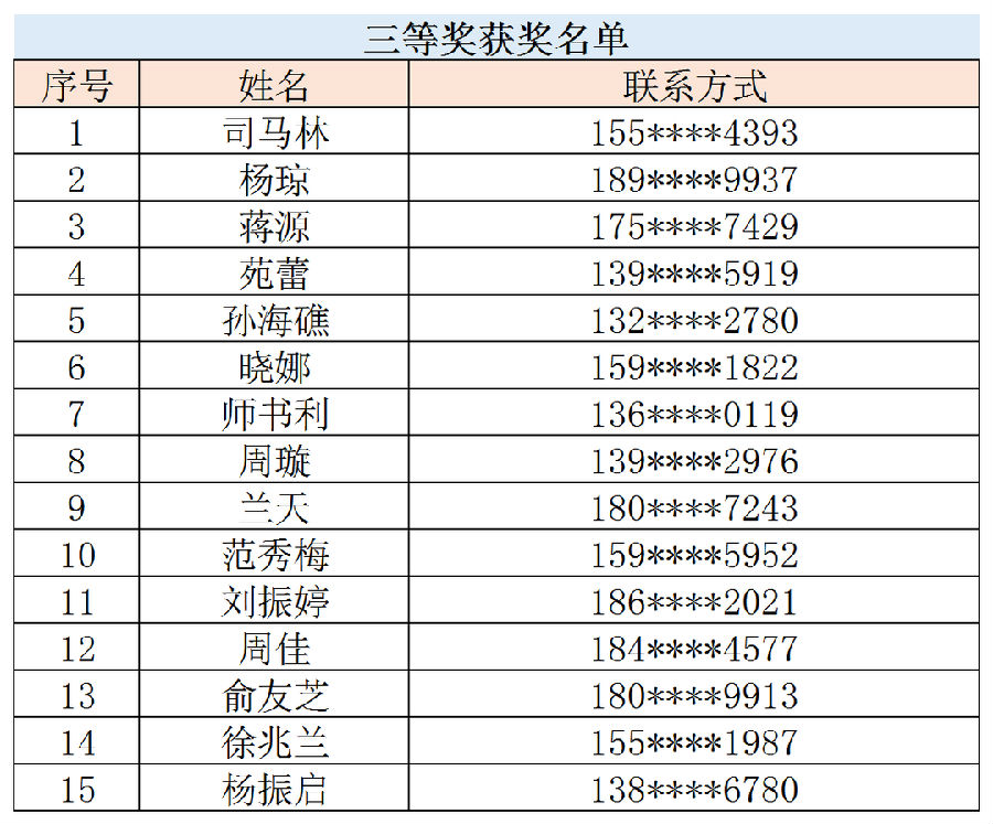 获奖名单公示