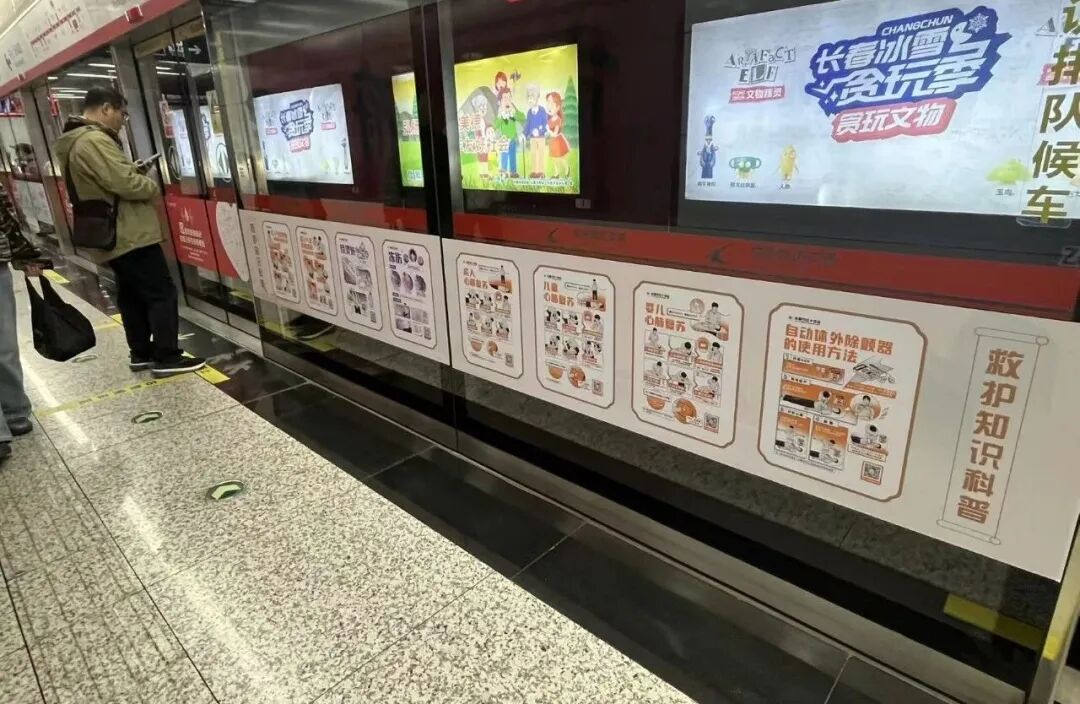 本次公益广告覆盖地铁一号线胜利公园、人民广场、东北师大、工农大路、繁荣路、市政府等多个重要站点,并在市政府站地铁屏蔽门精心打造了应急救护知识专区,将红十字知识与市民日常出行场景深度融合,让公益触手可及,让急救“随行相伴”。