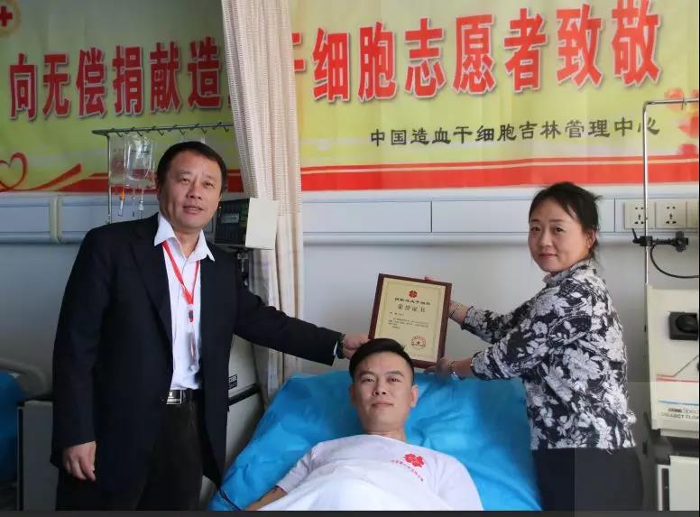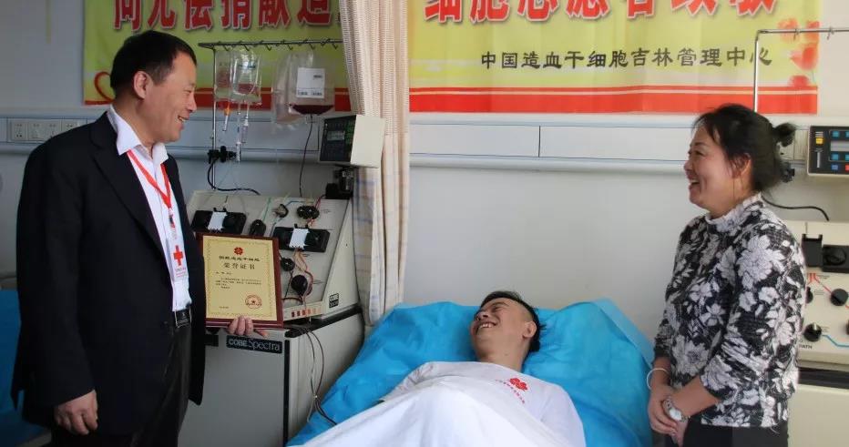 2019年3月25日上午,吉林省红十字会党组成员、秘书长于立敏来到吉大一院看望朱贺及其爱人,赞扬了朱贺的大爱精神,并为朱贺颁发了荣誉证书。