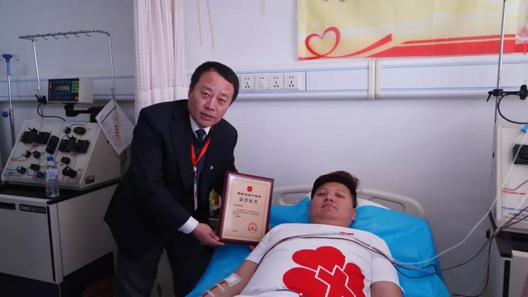 2020年1月20日捐献当天,吉林省红十字会党组成员、副会长于立敏亲赴医院慰问,并为吉林省第85例造血干细胞捐献者唐志鹏颁发荣誉证书。
