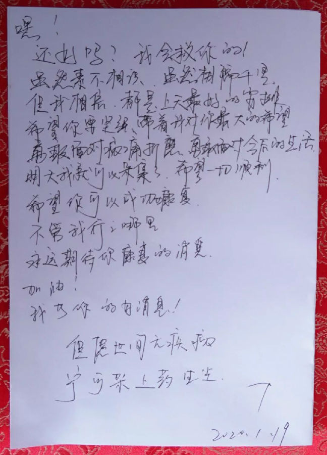 临近年关,车票机票是最难买的,幸运的是,他抢到了1月14日最后一张从福州飞往长春的机票。“当时真的好紧张,哪怕再晚十分钟,我就买不到票了。如果没有飞机票,我就是开车也要赶回长春,绝对不能耽误捐献。现在只有我能救他,我就想尽我所能出一份力,让患者和他的家人过个好年。好在抢到了票,没有耽误事,我觉得我们的运气都太好了。”当你真心想救一个人的时候,仿佛全世界都在帮你。