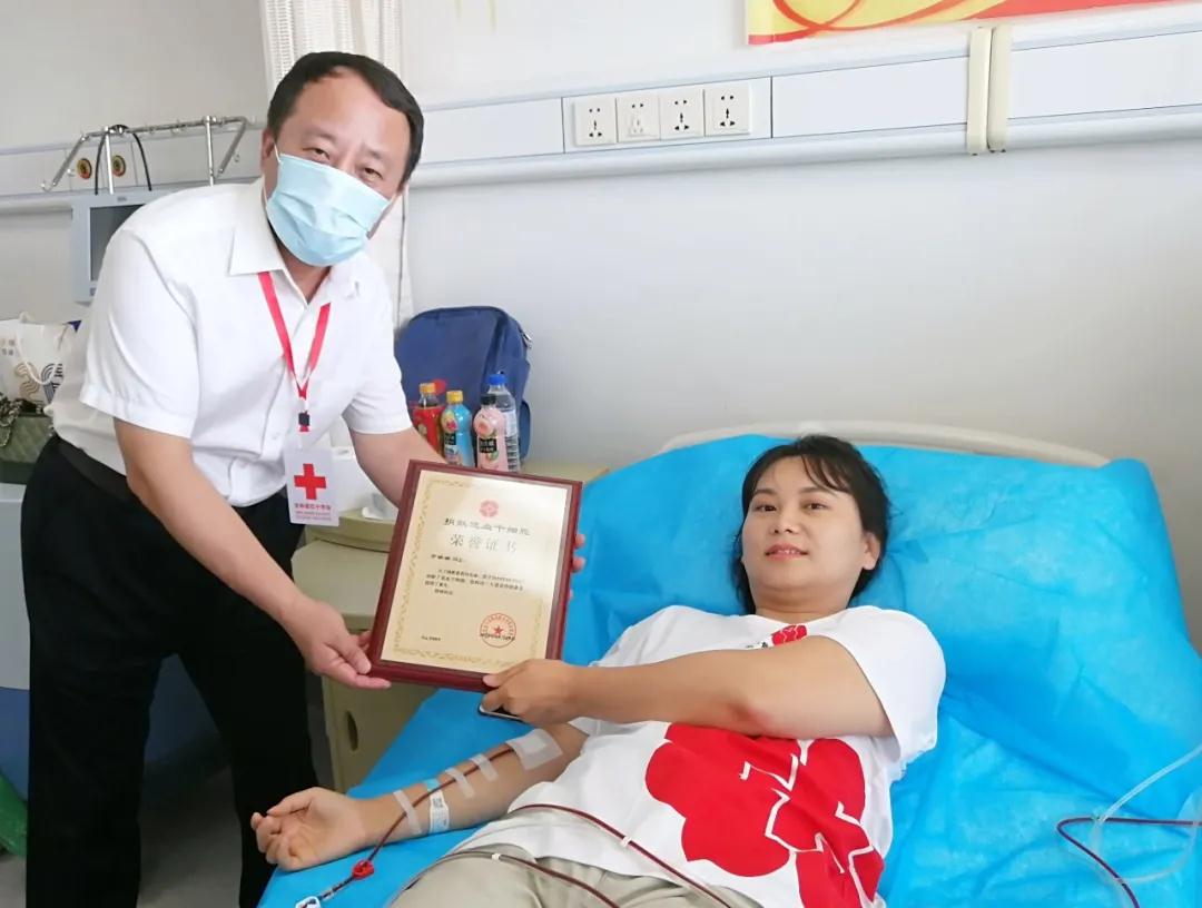 2020年8月5日,我省第92例(全国第9989例)造血干细胞捐献者于姗姗在吉林大学第一医院进行了造血干细胞采集。吉林省红十字会党组成员、副会长于立敏赶赴医院慰问,并向她颁发荣誉证书。