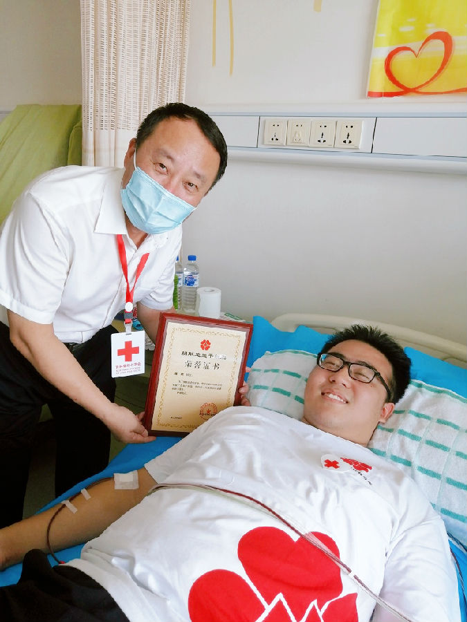 2020年8月14日,我省第94例(全国第10035例)造血干细胞捐献者屠顺在吉林大学第一医院进行了造血干细胞采集。吉林省红十字会党组成员、副会长于立敏赶赴医院慰问,并向他颁发荣誉证书。