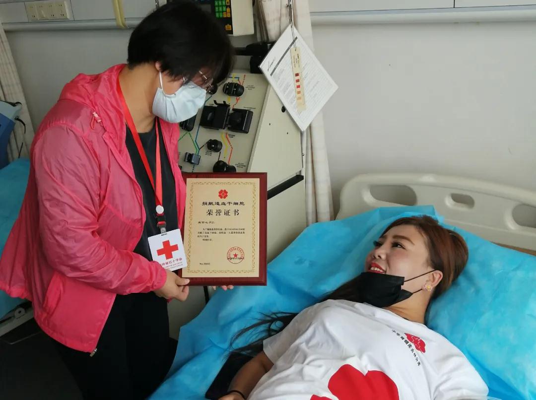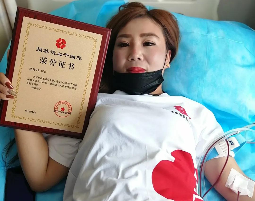 2020年9月9日,吉林省第98例(全国10162例)造血干细胞捐献者尚可心,成功捐献造血干细胞,帮助一名素不相识的血液病病患重燃生命的希望。中华骨髓库吉林分库负责人刘艳丽赶赴采集室看望慰问并向她颁发荣誉证书。