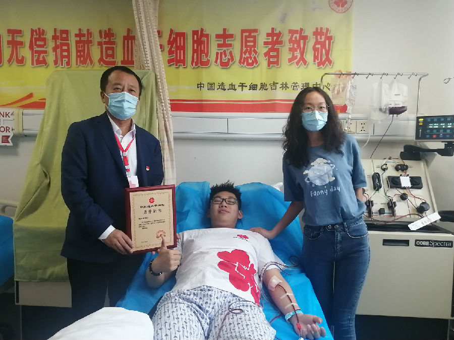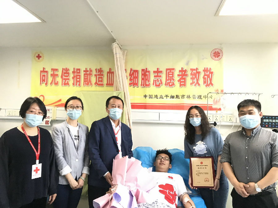 此次捐献造血干细胞的热血青年名叫马文强,是我省第107例(全国11415例)造血干细胞捐献者。吉林省红十字会党组成员、副会长于立敏,中华骨髓库吉林分库负责人刘艳丽,长春工业大学人文信息学院团委书记孟烨,赶赴医院看望慰问马文强,于立敏会长亲自为他颁发了荣誉证书。