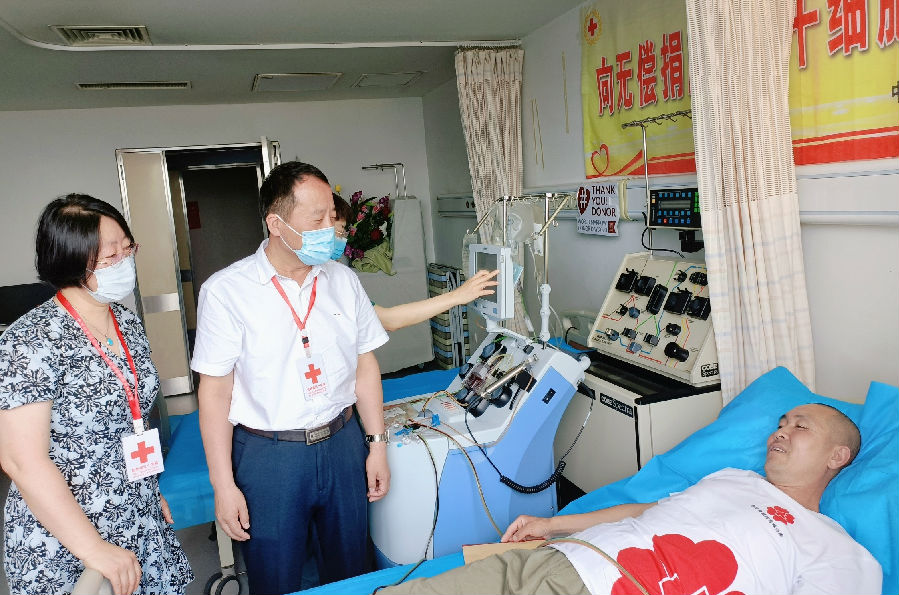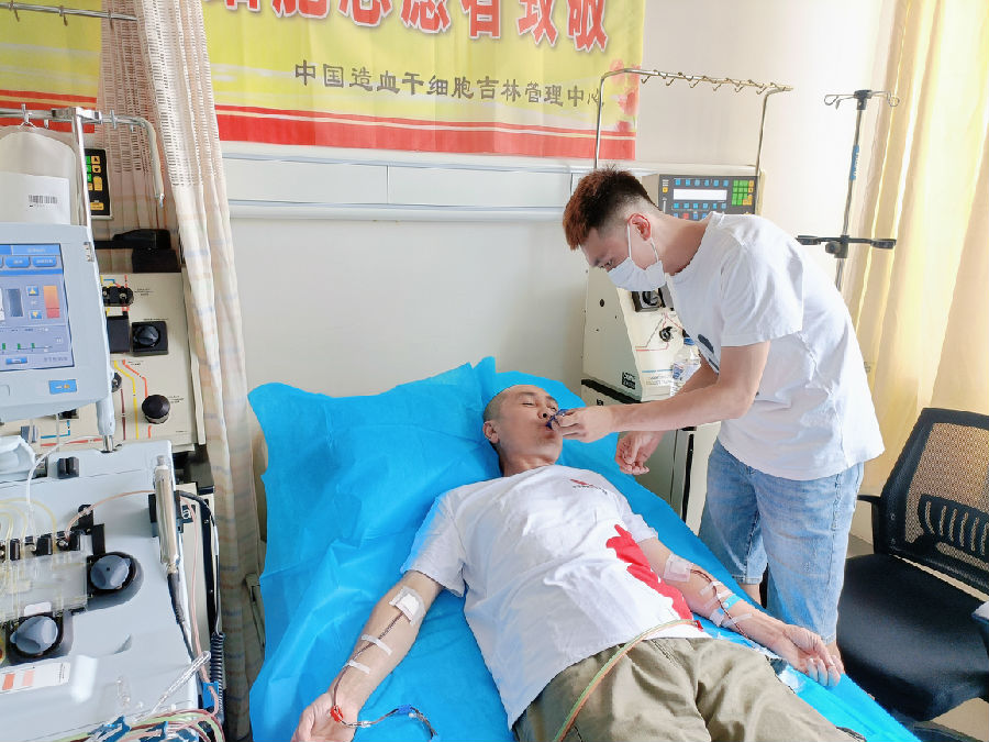 2021年7月14日,在吉林大学第一医院造血干细胞采集室内,吉林省第110例(全国11625例)造血干细胞捐献者周长利成功捐献了造血干细胞,挽救一名白血病患者的生命。吉林省红十字会党组成员、副会长于立敏赶赴采集室看望慰问并向他颁发荣誉证书。