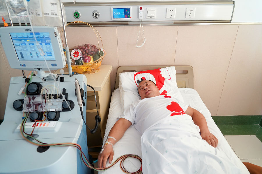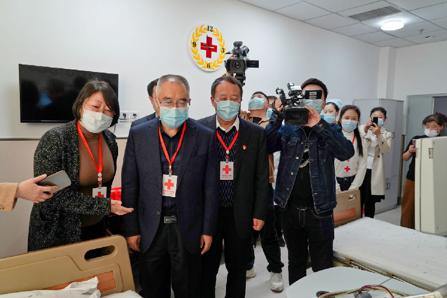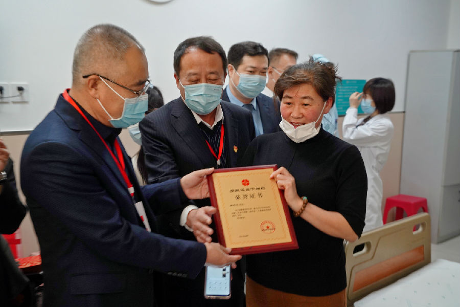授牌仪式后,牛继东常务副会长与有关全员领导一同看望慰问了正在吉林大学中日联谊医院血液科实施捐献的该院首例(全省第117例)造血干细胞捐献志愿者郭建忠,并为他颁发了奖牌。