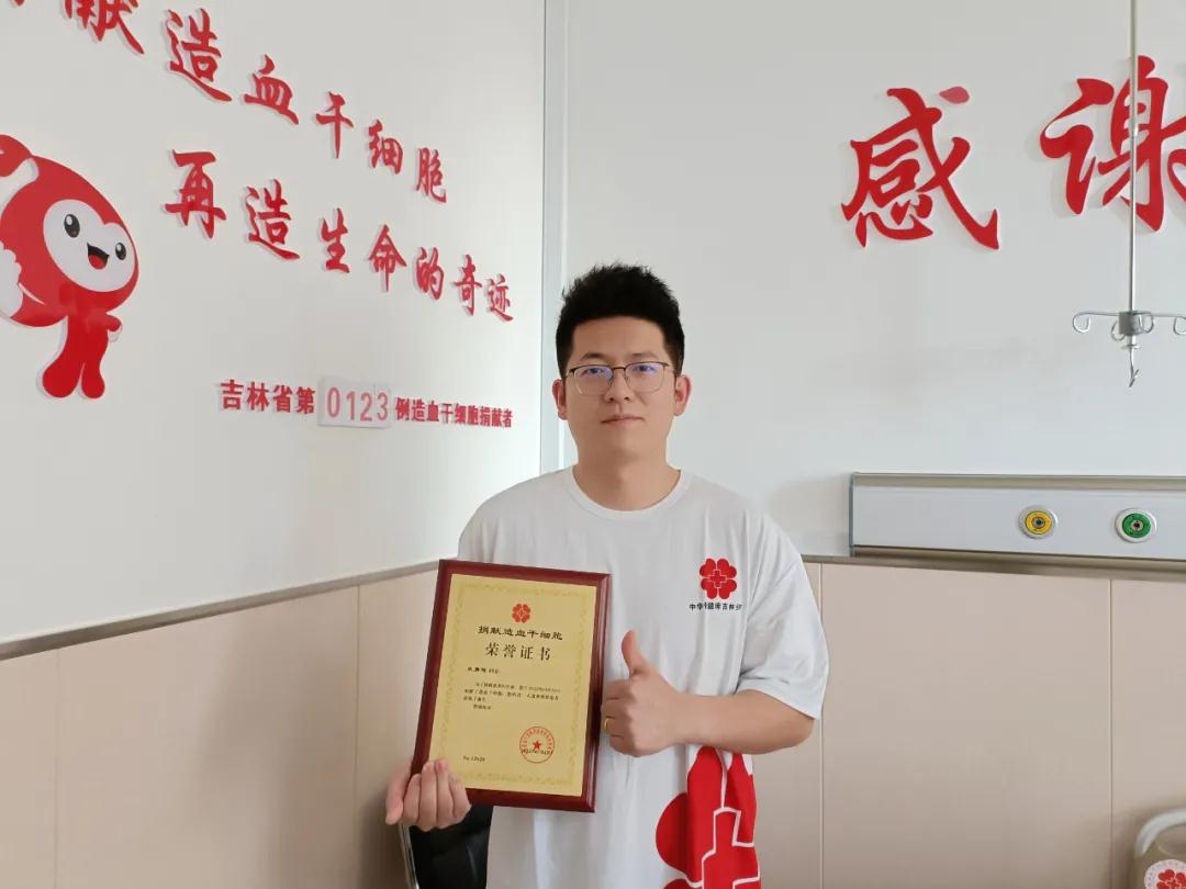 2022年1月12日,来自延边州敦化市的史勇琦在吉林大学中日联谊医院造血干细胞采集室,成功为一名血液病患者捐献“生命种子”,成为吉林省第123例(全国第12626例)非血缘关系造血干细胞捐献者。中华骨髓库吉林分库负责人刘艳丽赶赴医院看望慰问,并为他颁发荣誉证书。