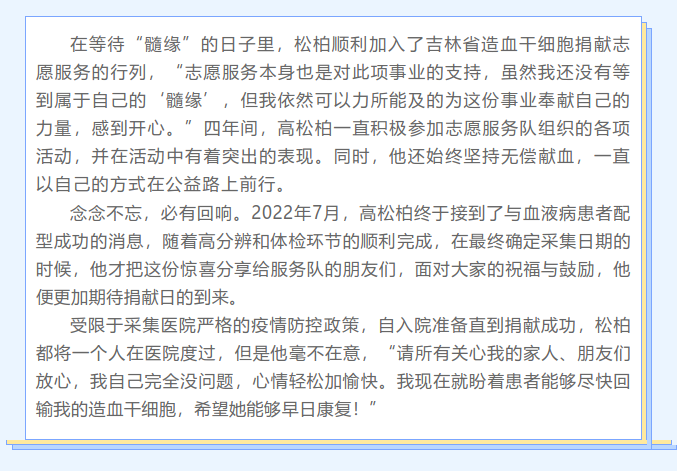 生命教育|身存善心,终遇髓缘——吉林省第136例造血干细胞捐献者高松柏